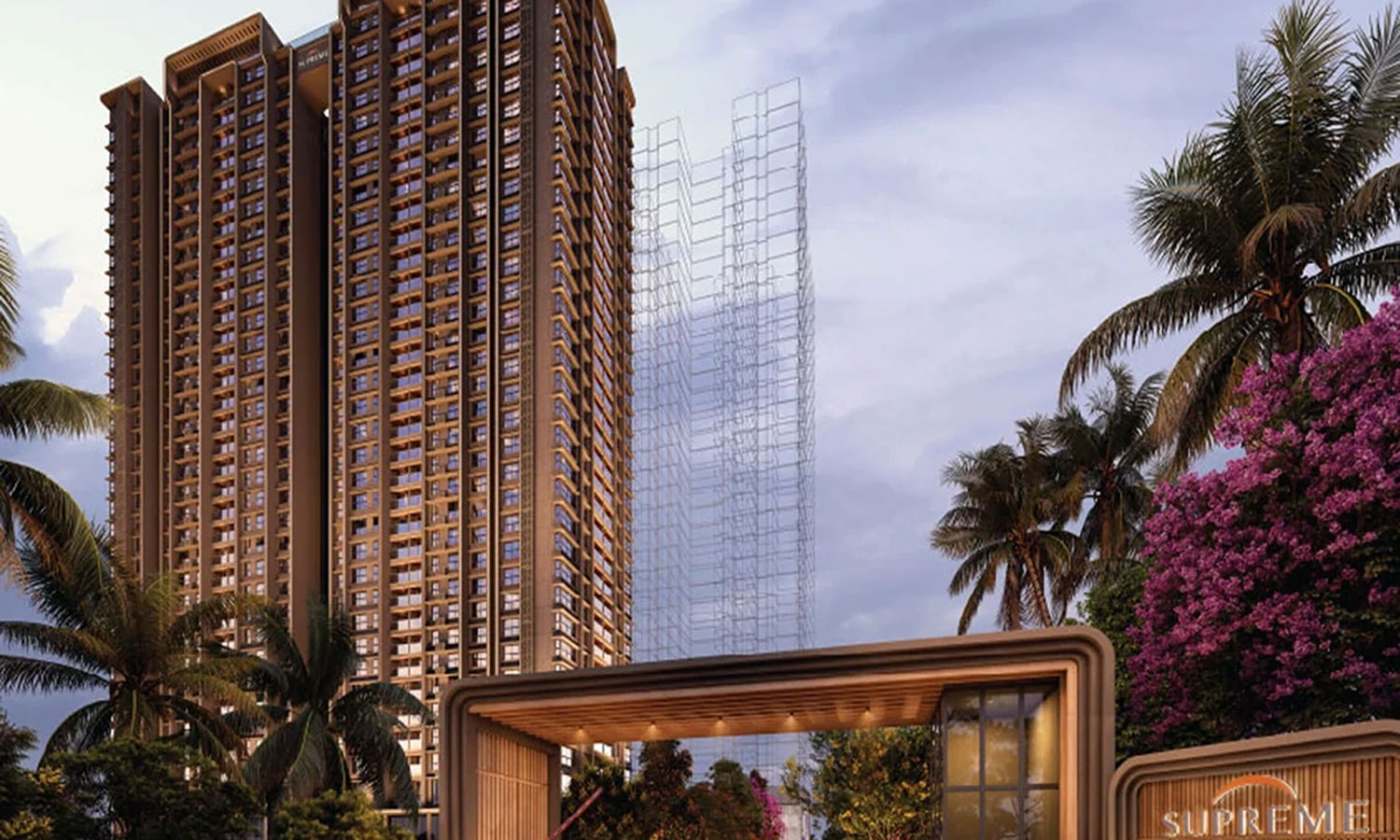 Graceful high-rise towers overlooking serene river views